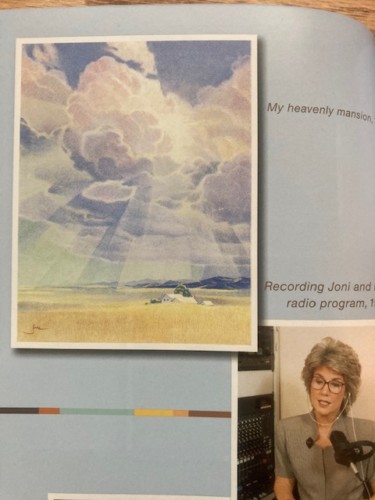 From her book, “Joni, (God) says our lives are like paintings that God is making. Your body- is only the frame for God’s portrait of you. Y’know, people don’t go to an art gallery to admire frames. Their focus is on the quality and character of the painting.”