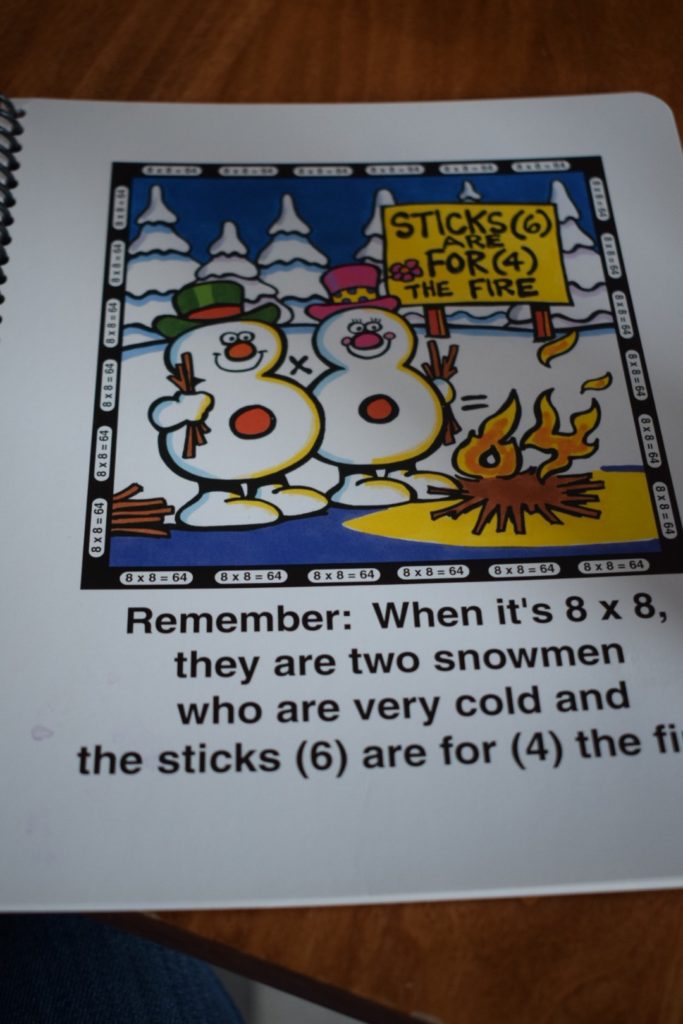 Times Tables the Fun Way turns each fact into a story, complete with a bright, colorful picture. The stories are engaging and just silly enough that children laugh and more importantly, REMEMBER the fact they need to learn. This turns learning math facts into a visual learning experience, which engages an additional part of the brain and helps them memorize more quickly- perfect!