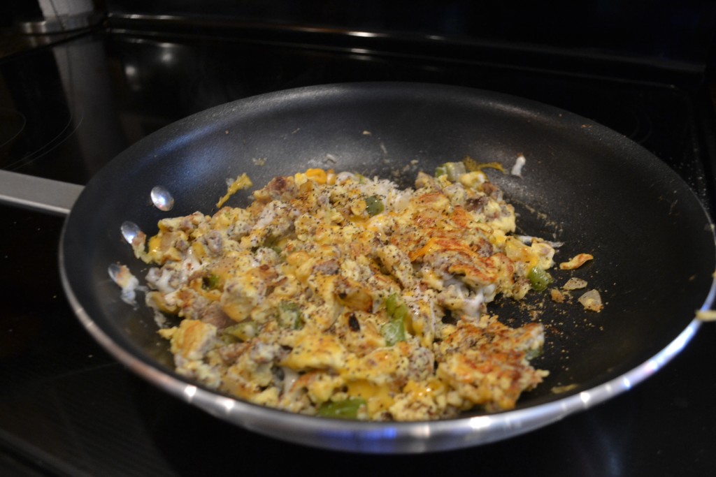 Tom and Cary are great cooks….and host and hostess, and travel guides and entertainers! We recently flew to upstate New York to visit my brother and sister-in-law in their new home. We had such a fantastic time! I’ll share some highlights of our trip with you all very soon, but this morning I want to focus on a delicious dish Tom created for us…..with his assistant Cary, by his side……Tom’s Killer Breakfast Burritos! They tasted absolutely fantastic. I stirred some up for my family this morning. This recipe is a keeper!