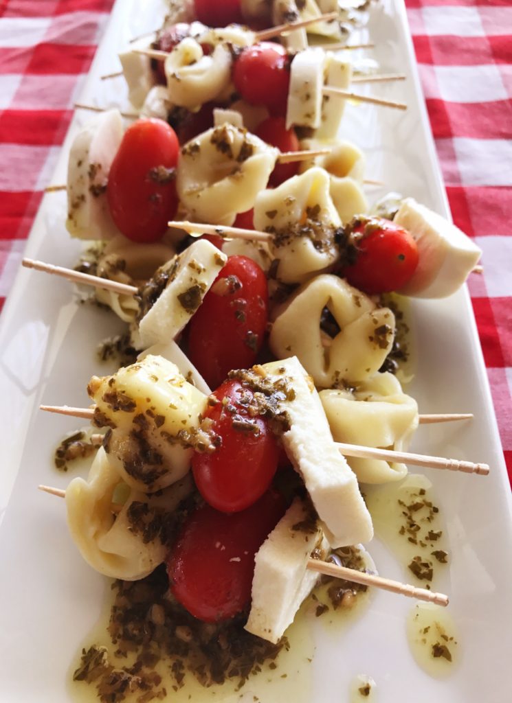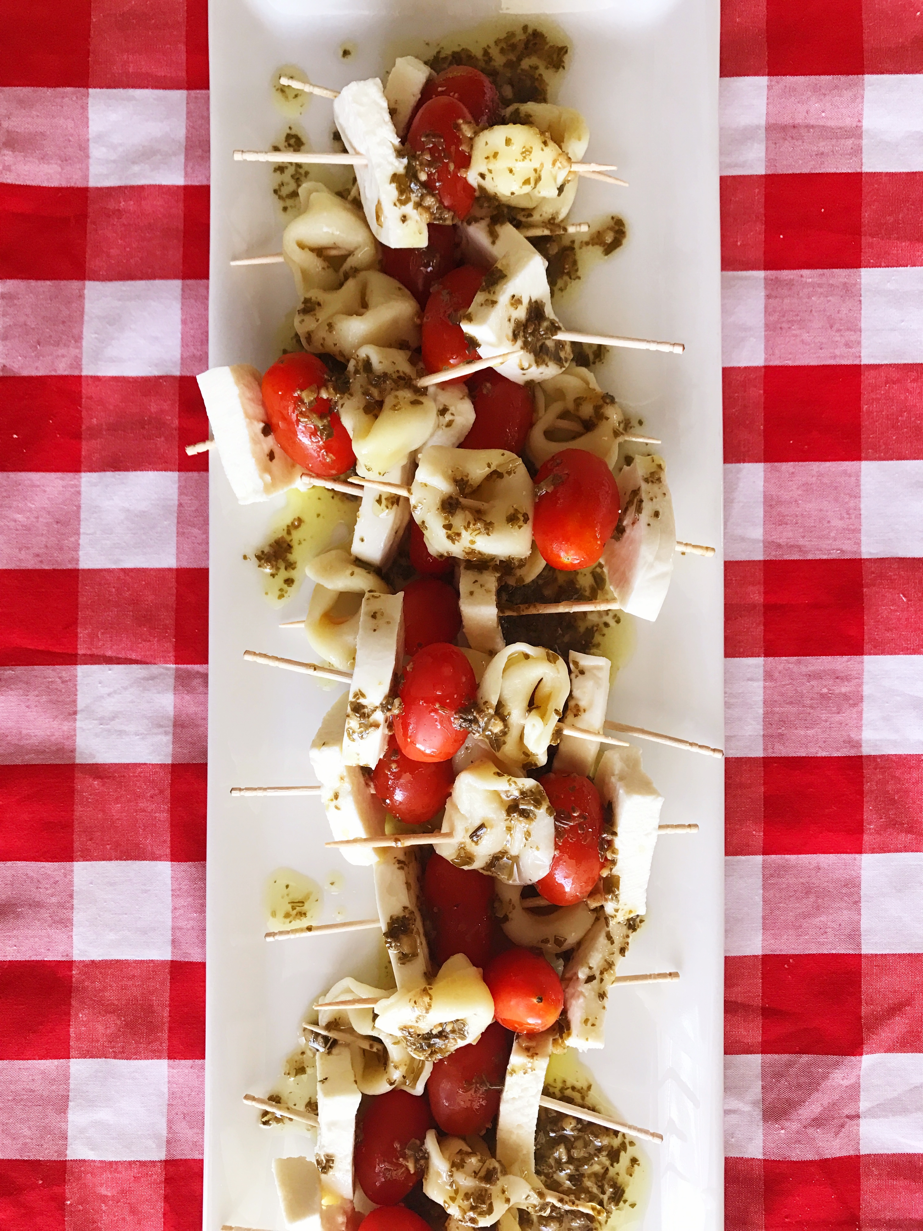 A few weeks back I posted a recipe for a delicious Greek Feta Dip that I had enjoyed while at a neighborhood block party with a friend of mine. At that same block party, I also had some of these tasty Tortellini Caprese Skewers. I just love going new places and trying new foods and there is no better way to do it than with family and friends.
