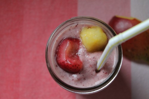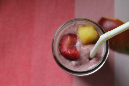 Smoothies are a great way to start the day! Not only are they healthy, but they are so refreshing, and filled with fruit and yogurt, making for a light cream base. Mmmm! There is no sugar in this recipe – just add honey for desired amount of sweetness.