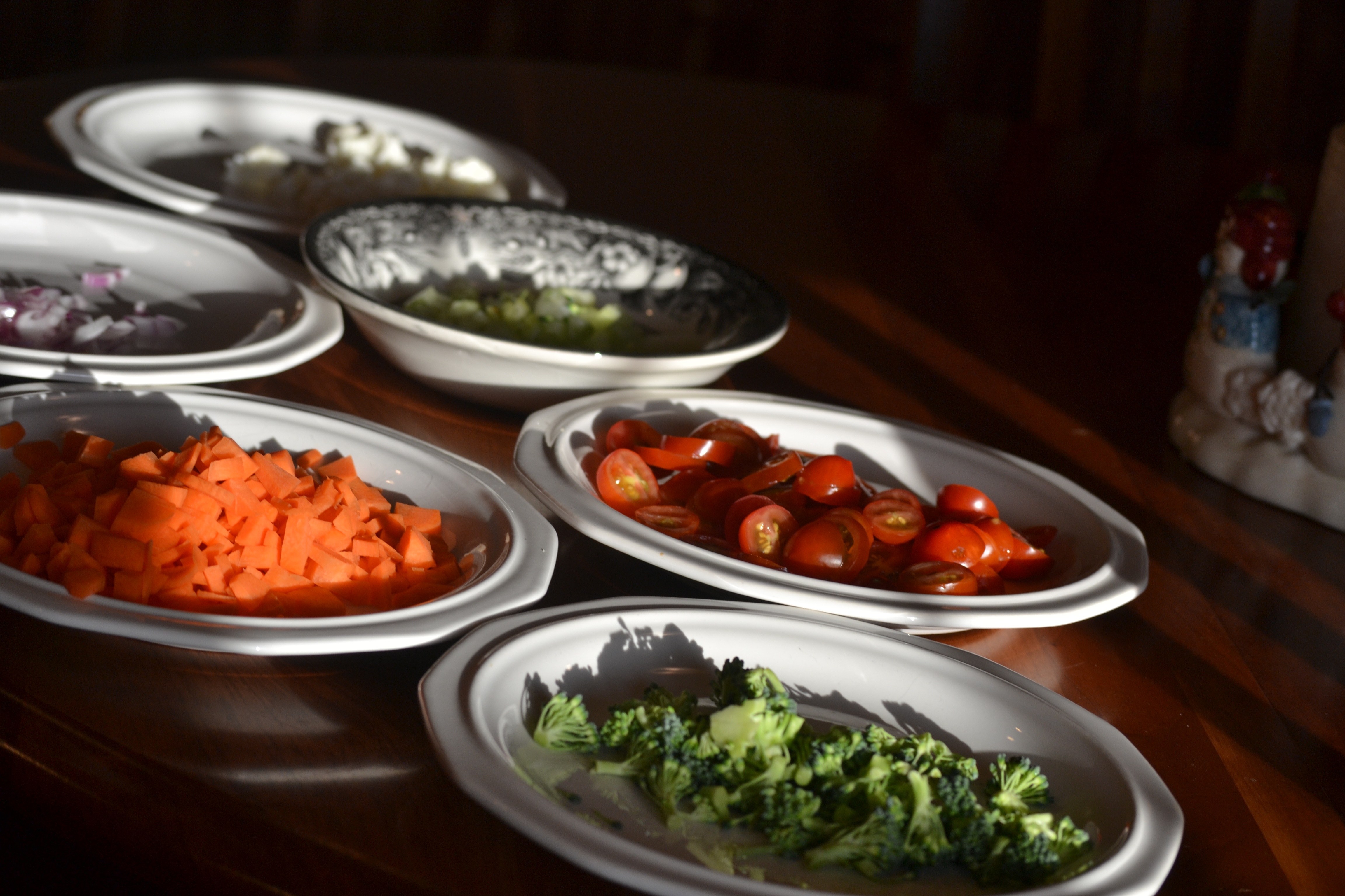 - ½-1 C each of assorted chopped veggies. (Carrots, onions, celery, broccoli, cauliflower, tomatoes), or any of your choice, or that you have on hand. 🙂